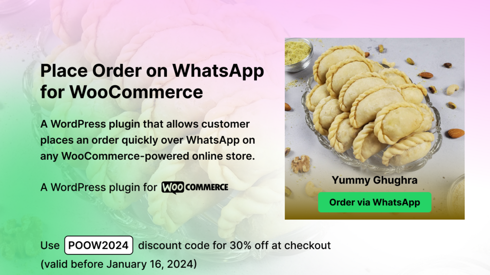 A WordPress plugin that allows customer places an order quickly over WhatsApp on any WooCommerce-powered online store.